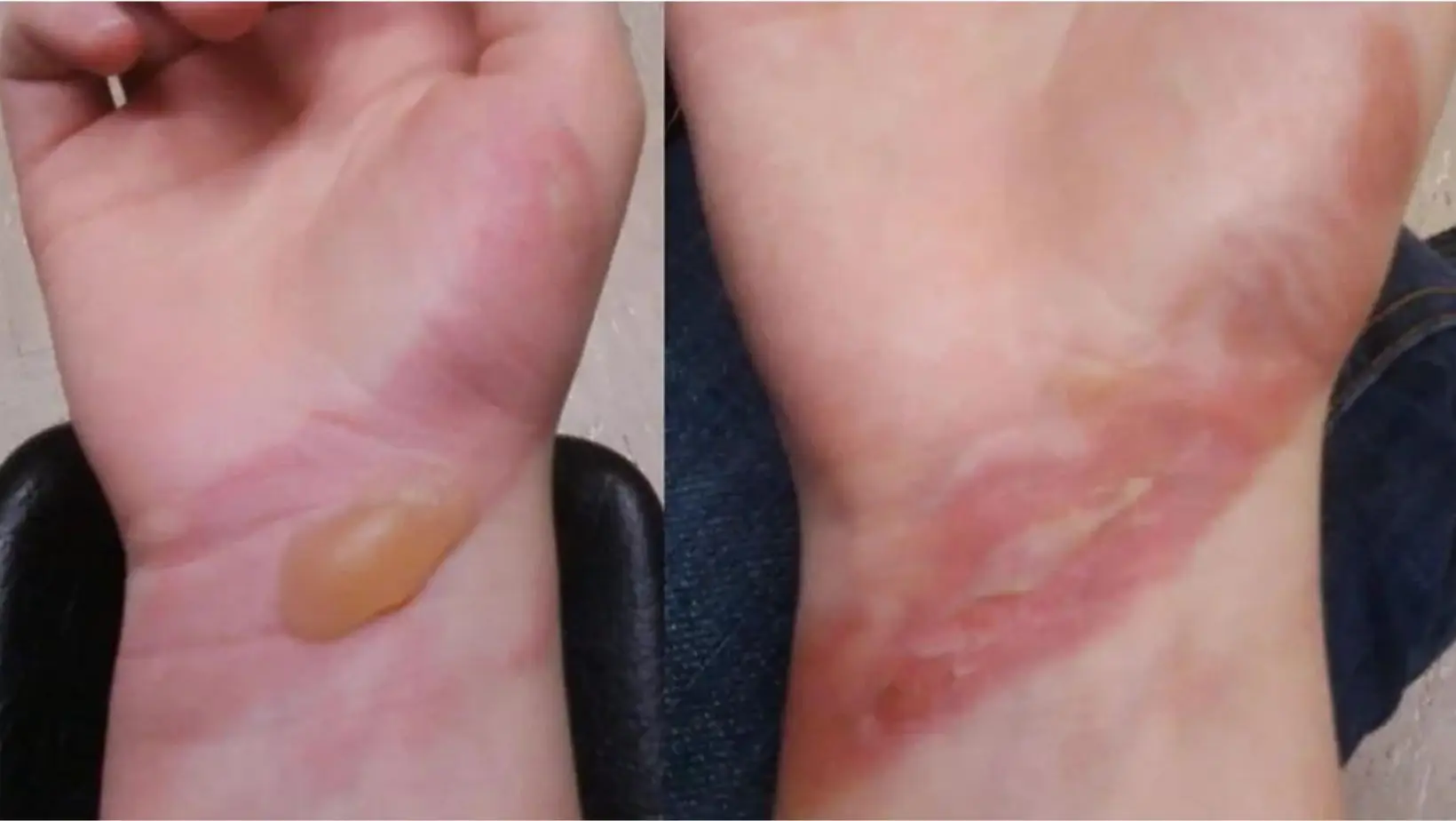 Το έγκαυμα επεκτείνεται ξανά στο δέρμα σας, παρόλο που είχε ξεκινήσει να επουλώνει και να μικραίνει σε μέγεθος.